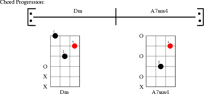 The pinky tends to be a difficult finger to control, so here is a two-chord progression to help you practice holding your pinky in place.